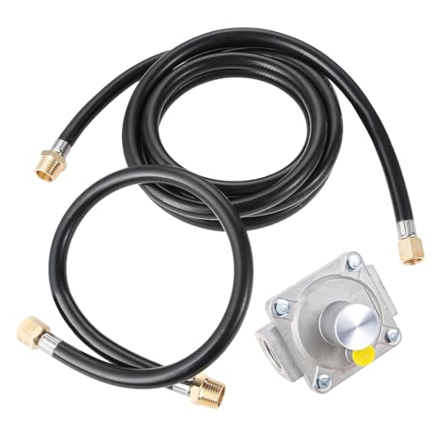??FEATURES?: This Kit is only suitable for low pressure applications. Do not use the product over 1/2PSI applications. Make sure the hose far from fire. Hose outlet hose connector 3/8”inner flared thread, with 3/8” quick connect connector on the other side, exposed 3/8”inner NPT connected to grille, hook on the other side to supply manifold natura.
