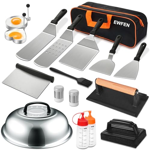18PCS Griddle Accessories Kit, Flat Top Grill Accessories Set for Blackstone and Camp Chef, Grill Spatula Set with Enlarged Spatulas, Basting Cover, Scraper for Outdoor BBQ