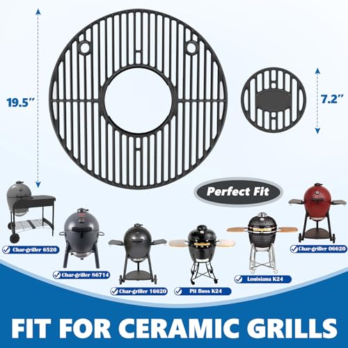 19.5" Round Grill Grate for Akorn Kamado Ceramic Grill Char Griller Akorn 16620 E56720 16820 Parts, Cast Iron Grate for Char-Griller E16620 Pit Boss K24 Louisiana Grills K24 Replacement, Firepit Grate