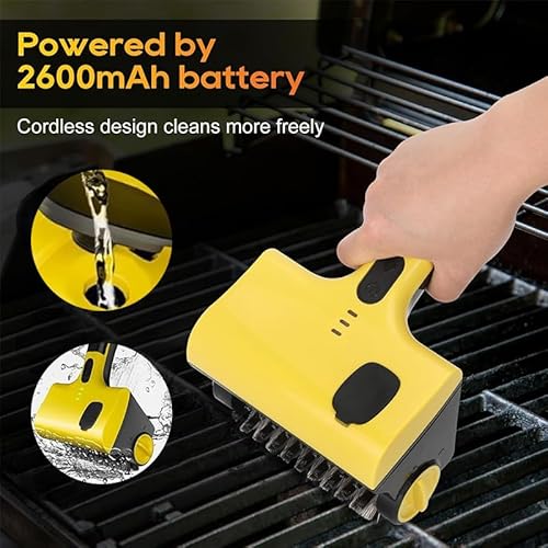 ?Cordless & Portable Freedom? Say goodbye to tangled cords! Our electric grill brush features a built-in 2600mAh rechargeable battery for true wireless convenience. USB charging delivers 40-60 minutes of cleaning power in just 2 hours – perfect for patio cleanups, camping trips, or last-minute BBQ prep.