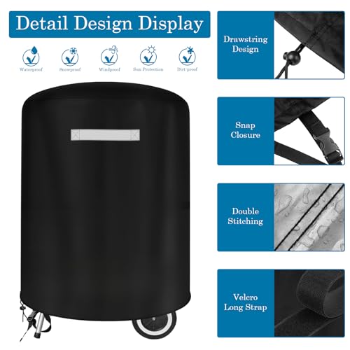 Sized for 22 inch Charcoal Kettle Grill?The charcoal grill cover measures 26.5"W x 26.5"D x 36"H, this griddle cover fits for Weber 22 Inch Charcoal Kettle grills, 22 Inch round smokers grill,22 Inch Jumbo Joe charcoal grill and most Weber 22" charcoal grill models.Universal enough to cover most of the standard vertical smokers