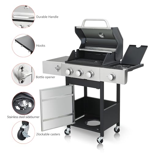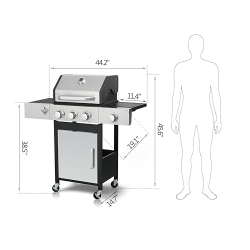 Powerful and efficient: With a total BTU output of 46790, this propane gas grill delivers exceptional heat for fast and even cooking. The high-quality stainless steel construction ensures durability and long-lasting performance, while the enameled cast iron cooking grids provide superior heat retention and even heat distribution.