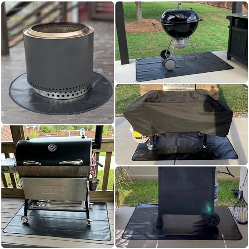 ?WIDE USE? We have a variety of sizes of fireproof grill mats, fit for small round fire pit /grill /charcoal grill/smoker with leg bases; Our fireproof mat is not only for use under the grill mat, as a splatter mat, camping mat, grill floor mat, bbq mat for under bbq, but also can use together with campsite, bbq, party or other daily use. Warm Tips: DON'T put heat source directly on Fire mat, there should be at least 8 inches of space between fire mat and heat source.
