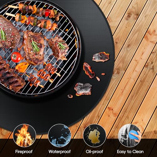 30" Fire Pit Mat & Under Grill Mat, 2-Layer Thickened Grill Mat for Outdoor Grill Deck Protector,Round Fire Pit Mat for Under Fire Pit,Double-Sided Fireproof BBQ Grill Mat, Oil-Proof & Waterproof