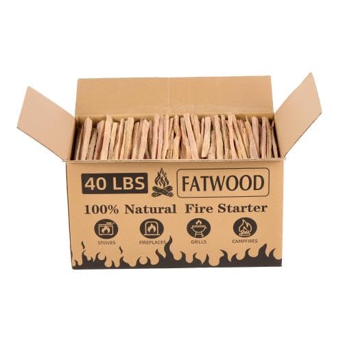 40 Lbs Fatwood Fire Starter Sticks, 100% Natural Pine Kindling Wood, Pine Firewood Firestarter for Campfire, Stove, Fireplace, Bonfires, Grill, Long-Lasting, Quick Ignition (40 LBS)