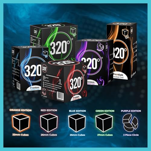 4kg - 320° Premium Coconut Shisha Coal Charcoal (25mm Cubes) for Hookah, BBQ, and Grilling - 288 Pieces, Long Burn Time, Nicotine Free, Natural, No Chemical Additives.