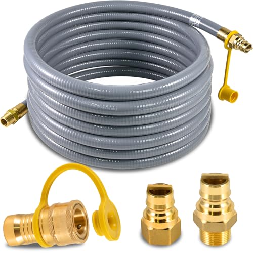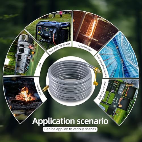 Wide Applications:3/4" ID natural gas hose and quick connect disconnect fittings compatible with Propane Supply System and Natural Gas Supply Hose System Both most standard natural gas hose and high BTU output outdoor cooking appliances.Whether you're hooking up Pipe Natural Gas Supply for Generators, Gas Grills, Fire Pits,RV ,patio heater or many more NG/LP propane devices,this fitting provides a dependable and versatile connection, enhancing the convenience and efficiency of your natural gas to enjoyment your outdoor cooking adventures