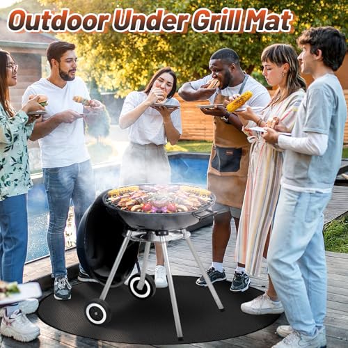 EASY TO STORE: The fire proof grill mat has a diameter of about 59 inches, and the soft material can be easily folded up, which makes it very convenient to store and carry. You can easily put it into the trunk of your vehicle and take it to an outdoor campsite, barbecue site, etc. No matter where your destination is, you can easily carry this mat with you.