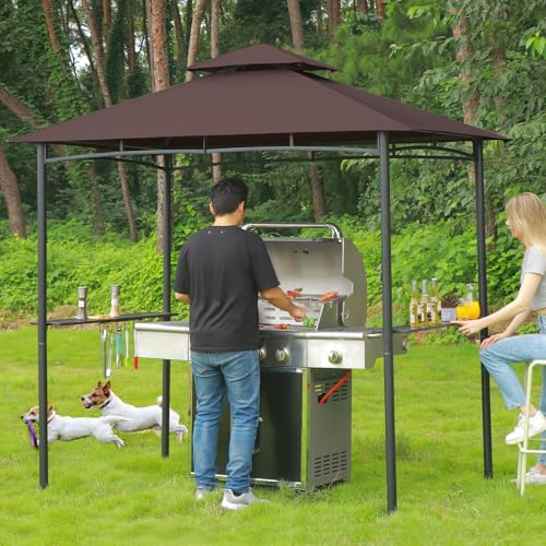 Details Thoughtful Designs - This grill patio gazebo is a perfect choice for providing a cozy shade for your outdoor BBQ event. Which featured by considerate details designs like handy shelves on both side for place plate, food, and so on. Hooks for hanging the BBQ utensils, bottle opener attached on the pole for your beverage service. Multifunctional detailed design is just for your convenience.
