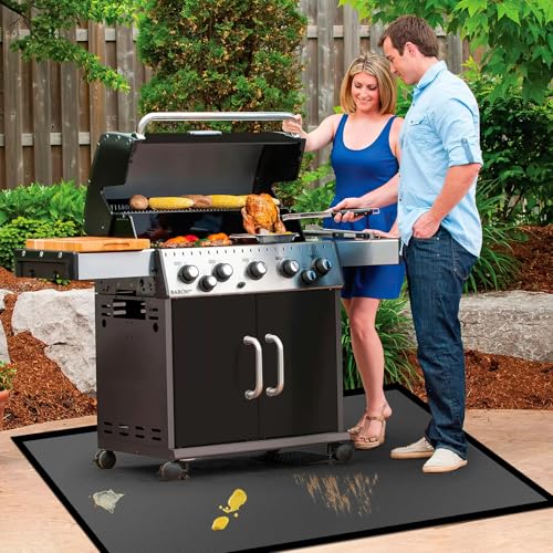 Suitable size & Full protection: This grill mat has suitable size, serving as a robust shield against stray embers or flames. It effectively collects spills, splashes, and other debris, safeguarding your floors from oil, sauce, charcoal, and heat. This minimizes the cleaning effort, enabling you to fully relish your outdoor experience.