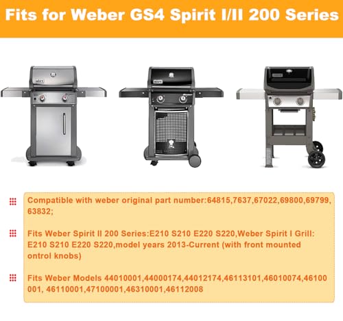 The grill grates replacement parts for weber grill parts spirit e210, weber grills replacement parts, compatible with weber original part number weber grill grates Weber GBS Cooking Grates Weber 64815, 7637, 67022, 69800, 69799, 63832; The removable centre grate insert: weber 64830. Fits Weber Models 44010001, 44000174, 44012174, 46113101, 46010074, 46100001, 46110001, 47100001, 46310001, 46112008.