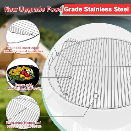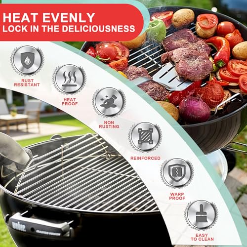 Upgraded Material: Designed for long-lasting performance, this grate is compatible with weber 22-inch kettle premium, ensuring a perfect fit for your setup. Constructed from high-grade stainless steel, it provides exceptional resistance to rust and high heat, holding up far better than standard alternatives. Upgrading for the weber grill charcoal grate, this durable option ensures no peeling or coating wear—just consistent, reliable results for years of outdoor cooking.