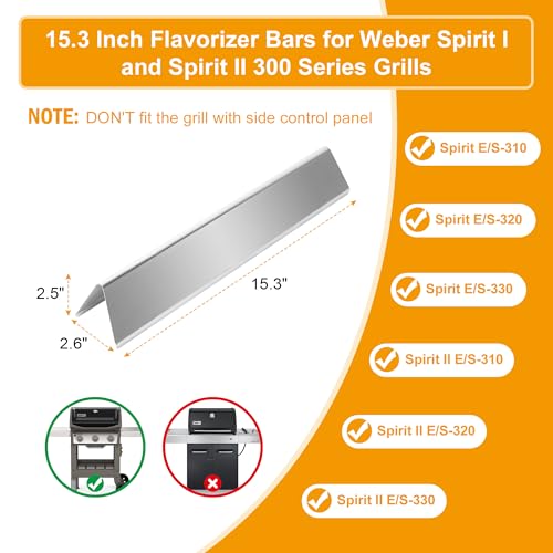[COMPATIBILITY] - Designed as a replacement part for Weber Spirit I & II 300 Series (Model Years 2013-2017) 3-Burner Gas Grills,Spirit E-310, S-310, E-320, S-320,and more(with Front-Mounted Control).For Weber GS4 Spirit II part and Spirit II E/S-310(2017 year models) Spirit II LX 300 LX E/S-310 grill bar.