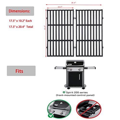 7637 Cast Iron Cooking Grates for Weber Spirit 200 E210 E-220 S210 S-220, Spirit II 200 Series Gas Grills, 17.5" Grill Grates for Weber 7637 Gas Grills with Front-Mounted Control Panels