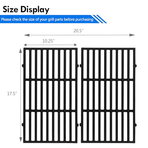 ??UPGRADE HEAVIER AND MORE DURABLE?The weber spirit grill grates are made of cast iron material with mate enamel and solid material that heavier, sturdier and more durable than others. The best quality of weber spirit grill replacement parts have wide and heavy crossbars with narrow spaces in between. Our grates are made of heavier inner metal core. It will hold more heat which translates into better quality grilled foods.