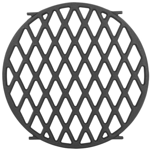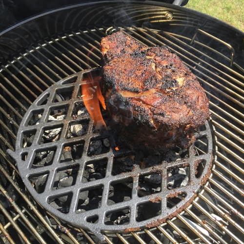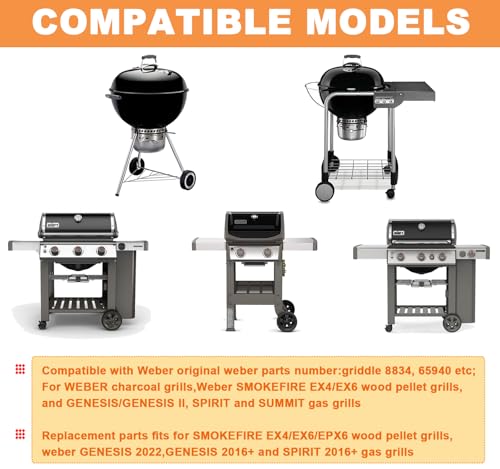The Sear Grate is compatible with Weber original weber parts number: weber gourmet grill grate 8834, 65940, weber kettle cast iron grill grates. Materials: Made of heavy-duty matte enamel cast Iron; Package includes 1-pack round Gourmet BBQ System Sear grate insert. Dimensions: 12" Dia. Great parts for Weber charcoal grills accessories, webber gourmet bbq system.