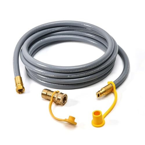 ABYDA 12 Feet 3/8" ID Natural Gas Grill Hose with Quick Connect Fittings, Ideal Natural Gas Line for Grills, Pizza Ovens, Heaters, and More Low Pressure Appliances