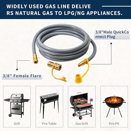 ?Widely Used?Versatile gas hose suitable for connecting natural gas appliances to low-pressure natural gas supplies, including Weber, Charbroil, and Blackstone, Nexgrill natural gas grills, generators, patio heaters, fire tables, pizza ovens, and other natural gas appliances.