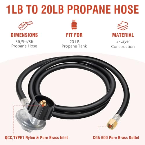 ?Durable & Sturdy?3-layer weather-resistant hose provide a secure and sealed connection for your propane appliances.