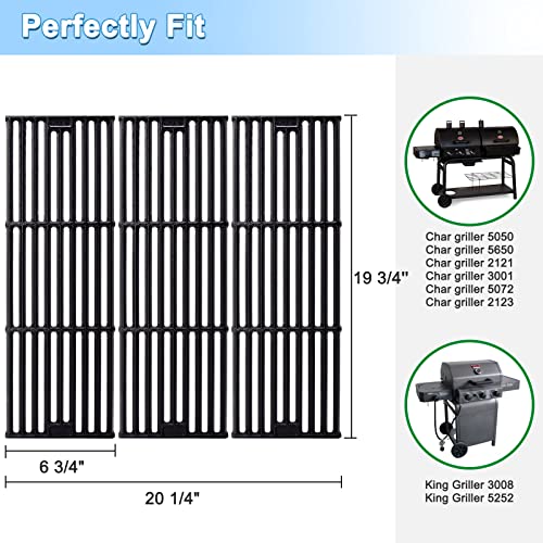 ??For King-Griller Replacement Parts? Cast Iron Grill Grates for King griller 3008, 5252. ??For Original Part Numbers? CG2121. ?This 19.75 inch coated cast iron perfectly fits for char griller 5050 replacement parts, char griller 5650 replacement parts, char griller 2121 parts, char griller 3001 parts, char griller 5072 replacement parts.