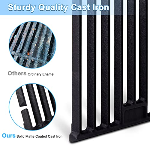 ??Extremely Sturdy? This char griller 5050 grill replacement grate is made of durable cast iron to ensure long-lasting use; More heavy and solid; Do not chip or rust out like the enameled grates, more sturdy and leave beautiful grill marks on the food; Our cast iron quality is also constantly updated, it is more corrosion resistant, heat resistant, durable, and has a longer service life. And the bars on this grate as thick as the original ones.