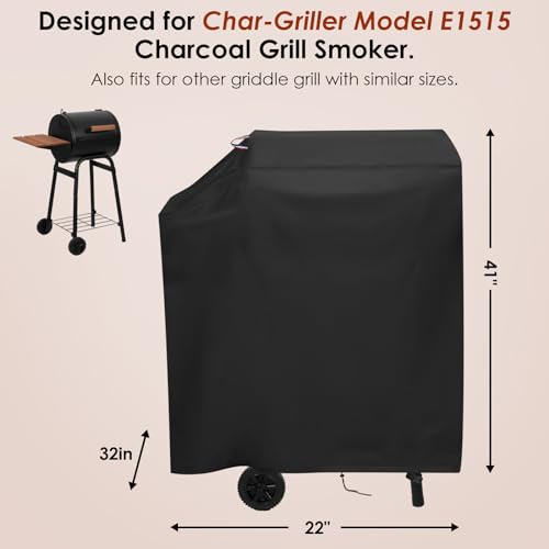 Custom Fit Dimension: 22"x32"x41", designed for Char-Griller Model E1515 Charcoal Grill Smoker. Also fits for other griddle grill with similar sizes