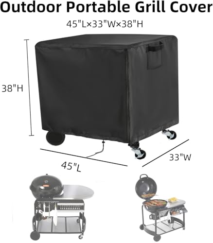 Dimension: 45" L x 33" W x 38" H. Suit for 22 inch Weber performer charcoal grill, for Generic 30 in barrel charcoal grill with side table, for Vevor 22 Inch Portable Charcoal Grill with Cart, also fit for another grill table or grill cart within the same size. Please check the size before purchasing