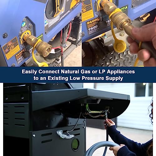 Work with both NG Appliances and LPG Appliances. Connects natural gas or LP gas supply to a larger BTU output outdoor appliance. You can use this 12-feet hose to connect natural gas equipment to an existing low-pressure supply, which can be effectively function with natural gas and liquid propane gas, unites grills, natural gas grills and RVs to permanent fuel sources.