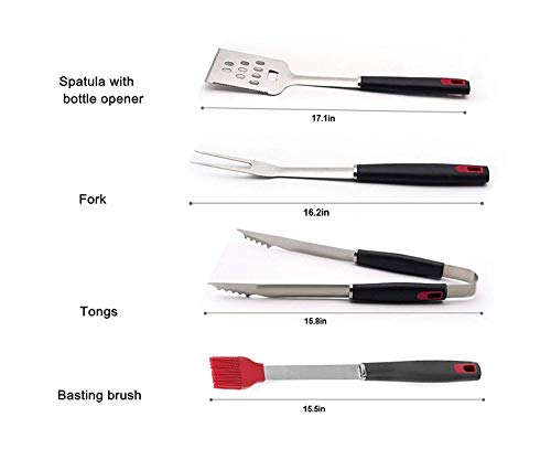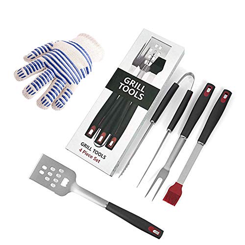 Barbecue Tool Sets with Grill Glove, BBQ Grill Tools Set Stainless Steel Grilling Tool Accessories Grill Spatula, Grill Fork, Grill Tongs, Basting Brush
