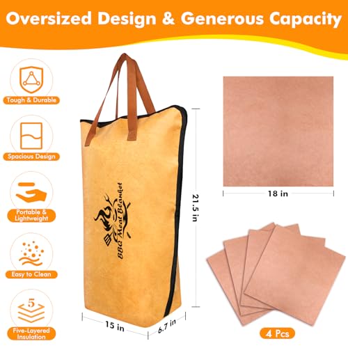?Extra Large & Wide Mouth?Generous 21" x 15" x 7" size—easily fits whole briskets, turkeys, or multiple cuts, ideal for BBQs, camping, and cookouts. Wide opening allows mess-free insertion/removal, keeping meats intact and blanket clean while maintaining warmth.