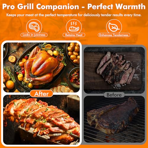 ?BBQ Meat Resting Solution? Designed for low & slow cooking, this BBQ blanket for resting meat is ideal for smoked brisket, pork shoulder, turkey, and other large cuts. Its insulated design locks in heat during the resting phase, ensuring juices redistribute for maximum tenderness and flavor. Works seamlessly with electric smokers, pellet grills, and charcoal setups.