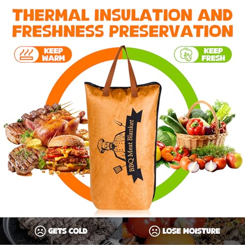 BBQ Blanket for Resting Meat, 21in Meat Resting Blanket with Wide Mouth, Smoker Grilling Meat Insulated Resting Bag for Large Brisket/Beef/Pork Shoulders/Turkeys, Gifts for Men
