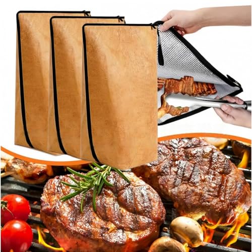BBQ Blanket for Resting Meat - Reusable Zippered Insulated Brisket Resting Blanket, BBQ Blanket, Smoker Meat Resting Blanket for Large Brisket/Beef/Pork Shoulder/Turkey BBQ Meat Bag (3 PSC)