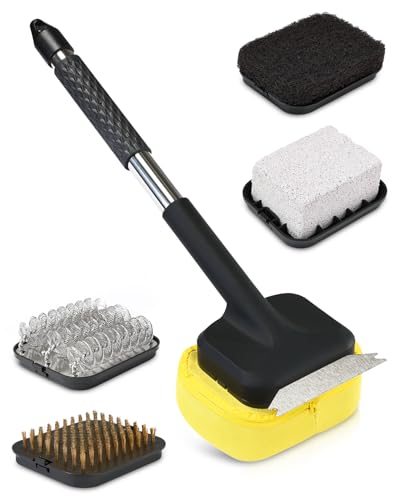 5 Interchangeable Heads for Every Grill Challenge:Upgrade your grill game with the ultimate grill brush designed for versatility. Our 5-in-1 cleaning brush includes stainless steel helix, wire, heat-resistant fabric, scrubbing pad, and pumice stone for cleaning—all replaceable! Tackle stubborn grease, char, or delicate surfaces effortlessly. Whether you’re scrubbing porcelain grates with the pumice stone or steam-cleaning with the fabric brush, this grill brush for outdoor grill adapts to your needs. Perfect as bbq accessories or grill accessories, it’s the last brush you’ll ever need!