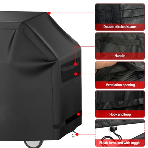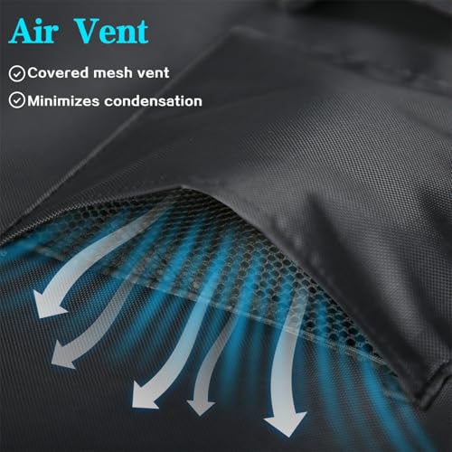 ?Convenient Handle & Covered Air Vents?This bbq grill cover comes with side handles for easy daily lifting and covering. The side air vents enhance air circulation, effectively reducing internal moisture buildup and keeping the grill dry.