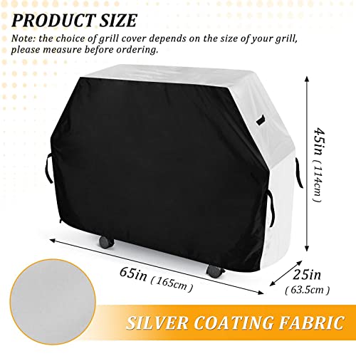 Applicable size: Our grill covers measure 65(L)x 25(W)x 45(H) inches and fit most grills that have 2 to 5 burners. Your grill is within 59-65 inches of width, and this grill cover will be perfect. Note: Please measure the grill before buying to make sure it is the right size.