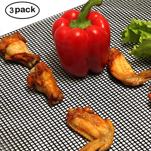 BBQ Grill Mesh Mat - Non-Stick Cooking Mats for Grilled Vegetables/Fish/Fajitas/Shrimp, Grilling Sheet Liner, Reusable Grill Accessories - Use on Gas, Charcoal, Electric Barbecue (15.7" x 13", 3 Pack)