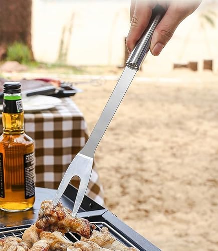 Premium Quality - Maintain a safe distance between your hand and any flames or hot surfaces by using a handle that is 12 inches long when handling large grills. Stronger, longer-lasting stainless steel that won't break or rust. Bring delight to your outdoor BBQ by going beyond the grill. Hangers are provided for easy storage and food grade grill tools for outdoor grill are easily cleaned with warm, soapy water.