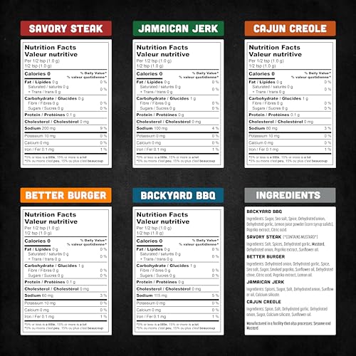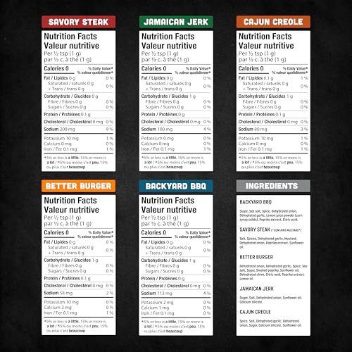 Major flavor for your favorites - this grilling seasoning gift set contains 5 unbelievable blends: Savoury Steak, Better Burger, Backyard BBQ, Cajun Creole, and Jamaican Jerk.