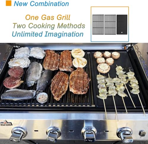 ?[ New Combination for Your Charbroil Grill ] We replaced one of the original grill grate with a heavy-duty griddle. It is absolutely perfect for fish, shrimp, vegetables, even pancakes. Way better than trying to do them on a grill rack or with a basket. Griddle allows you to cook multiples types of food at the same time.
