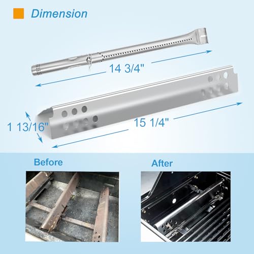 ?Package Contents: 2-Pack Stainless Steel Heat Tent, 2-Pack Burner and Grill Igniters. ?Heat Plate Dimension: 15 1/4" x 1 13/16", Replacement Parts for Charbroil Original Parts Number G466-0024-W1; ?Burner Dimension: 14 3/4'' x 3/5", Replacement Parts for Charbroil Original Parts Number G466-2500-W1
