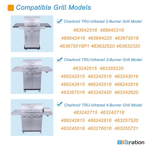Required 2 x (2-pack) for 4 Burner Grills ?Replacement Parts for Charbroil Commerical TRU-Infrared 4-Burner Grills 463257520 463242715 463242716 466242815 466242816 463245518 ?Replacement Parts for Charbroil Signature TRU-Infrared 4-Burner Grills 463255721 463276016 463255020