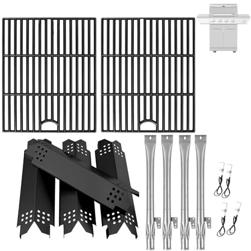 ?Package Contents: 2-Pack Matte Cast Iron Cooking Grates, 4-Pack Burners, 4-Pack Heat Plates and Grill Igniters. ? Cooking Grate Dimension: 17 x 13 1/4" for Each, 17 x 26 1/2" for Total ?Heat Plate Dimension: 14 9/16'' x 4 3/16'', Replacement Parts for Nexgrill Heat Tent #04007677A0; ?Burner Dimension: 14 7/8", Replacement Parts for Nexgrill Burner #NEX20003087A0