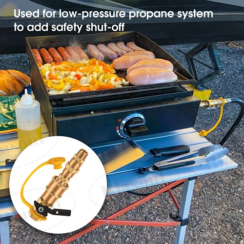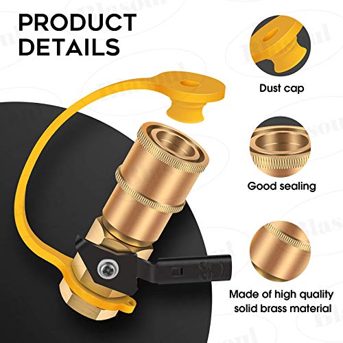 ?Good Quality Material?Blasoul RV propane quick connect kit is made of high quality 100% brass, durable and long lasting, used for low-pressure propane / natural gas systems with safety shut off valve. Not only brings convenience to you but also ensures your safety.