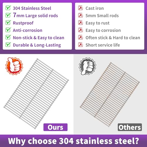 Boloda High quality solid rods of stainless steel. These steels resist corrosion and maintain its strength at high temperatures. Thick is 7mm, More thicker and heavier than other brands, your barbecue grill won't wear out and rust after times of using.