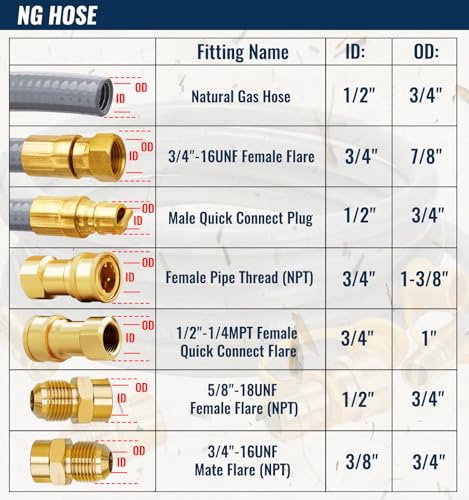 NATURAL GAS - This gas hose can connect natural gas/propane gas appliances to natural gas supply. Connecting LPG grills, natural gas grills and RVs to permanent fuel sources.