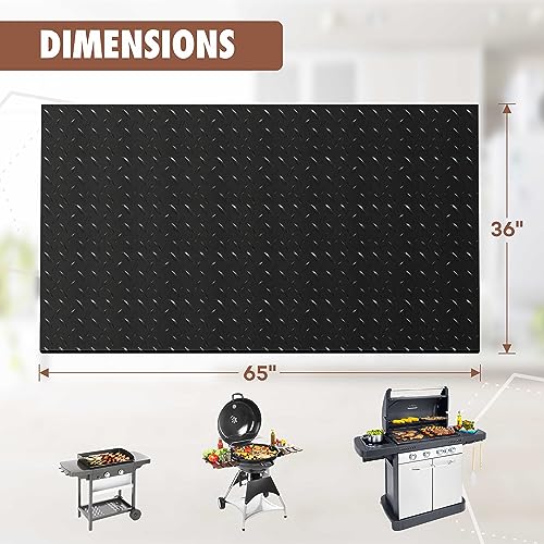 LARGE OUTDOOR BARBECUE MAT - At 65 inches long and 36 inches wide, this bbq mat for under grill is suitable for different sizes and designs of gas and charcoal grills, turkey fryers, firepit, outdoor griddles, fireplace and more.