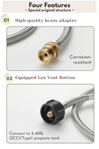 Built with long-lasting construction, the 4FT propane hose is made of stainless steel braid for airtightness and stability. It is resistant to heat, and offers strong bending durability for a safer, more reliable connection.