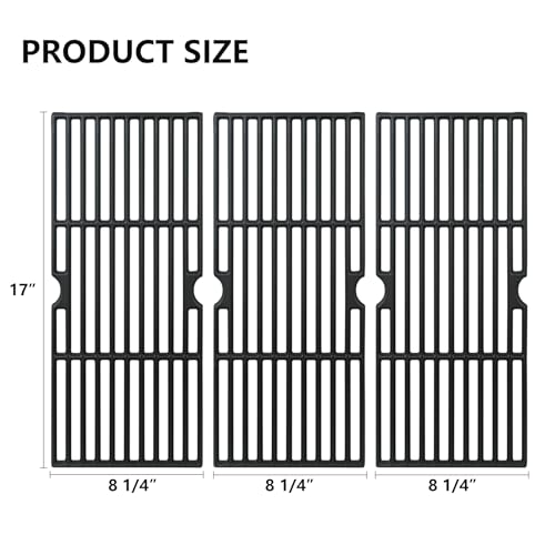 DIMENSIONS: 17" x 8 1/4" each, 17" x 24 3/4" for 3 units. Each package includes 3 pieces cooking grates. Before placing your order, please ensure you measure the size of your original parts and compare them with ours