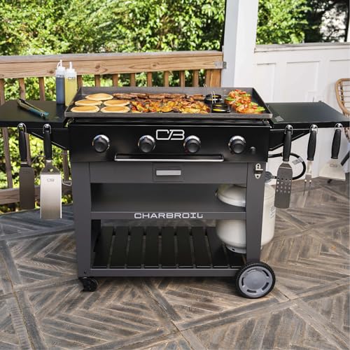 WIND-BLOCKING GAS GRIDDLE: Powered by liquid propane gas, this griddle runs on a 20-pound tank, not included. It reaches cooking temperatures quickly, delivers high temps and maintains even heat. The wind blockers ensure efficient cooking so your fuel goes further.